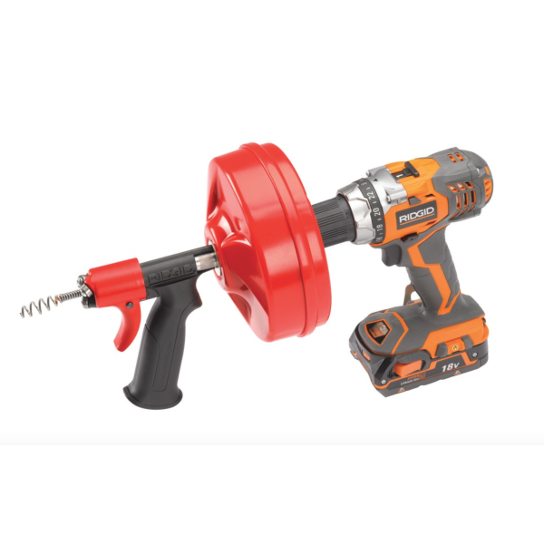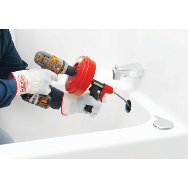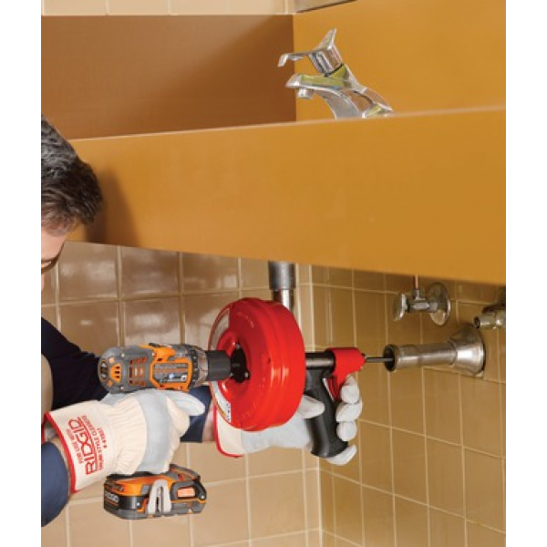 RIDGID POWER-SPIN+ kézi csőtisztító AUTOFEED automatikuselőtolással a Ø20 - 40 mm (1/2" - 1 1/2") átmérőjű csatornáktisztításához - csatlakoztatható egyenes fúróval. Az automatikus előtolásnakköszönhetően a kezek és a munkaterület is tiszta marad a munkavégzéssorán – a kéz nem érinti a spirál kábelt. A munkavégzés megkönnyítéseérdekében a POWER-SPIN+ modellhez egyenes fúró csatlakoztatható.